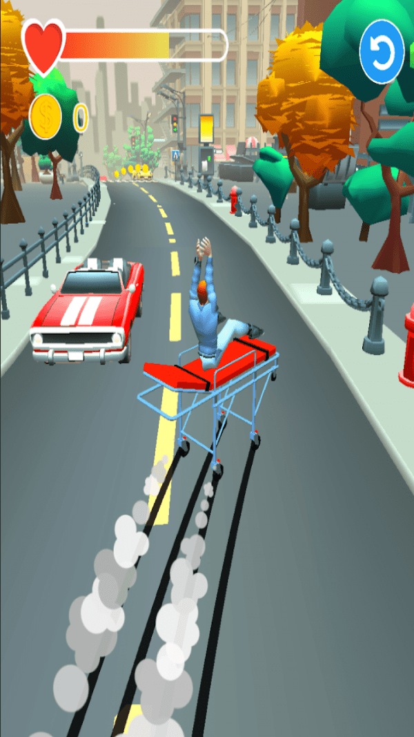 疯狂的救护车完整版您从救护车上摔下来了,现在在充满障碍的路线上,必须随身担架漂移才能上医院。