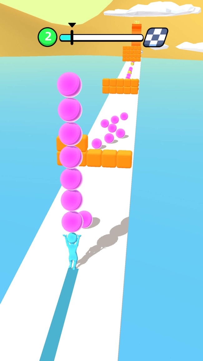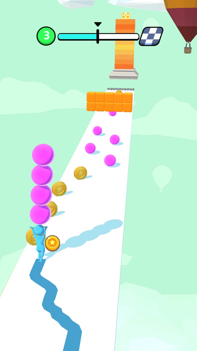 顶球一起浪是一款魔性且另类的跑酷游戏。勇敢的小人闯关冲冲冲,一路上收集小球顶在头顶,跑的又快又稳,防止小球掉下来,并以最快的速度到达终点。赶快下载游戏体验吧!