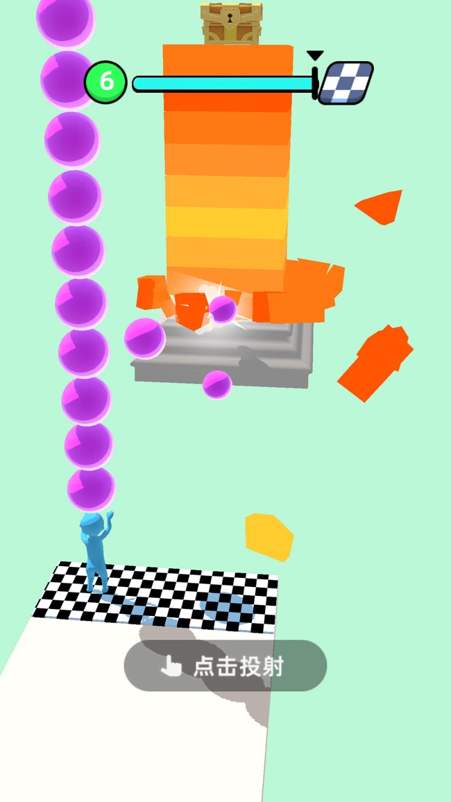 移动收集更多的球球,避开尽量多的障碍物,击碎终点的方块,获得最终的宝箱!