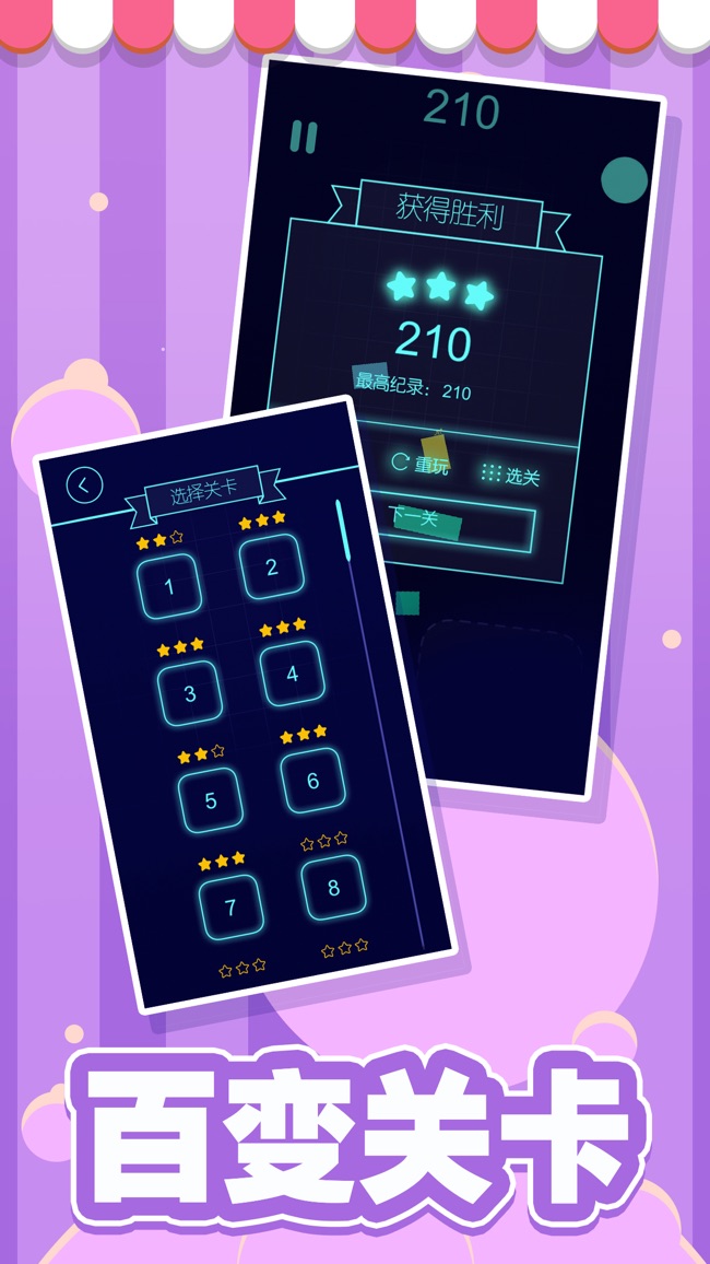 每关都有最多3颗星的奖励,收集的星星越多你的分数也会越高哦!