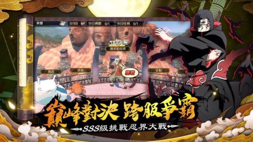 半自动战斗系统,告别游戏时代,手动释放最强必杀,热血PVP战斗,最强忍者手办。