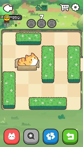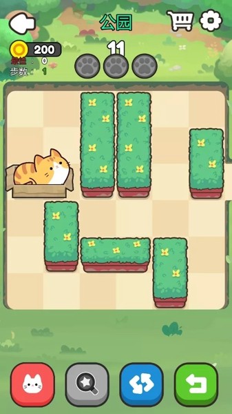 3、用你的手指移动积木,试着用尽可能少的步骤将红色小猫移到最右边。