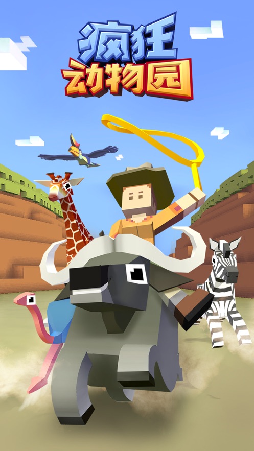 疯狂动物园游戏整体偏向于简朴的像素风,类似于我的世界中的“方块构成世界”。游戏时画面也是非常流畅的,特别是在在动物身上颠簸时屏幕的抖动十分有感觉,十分简单易上手,老小皆宜吧。