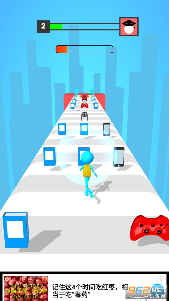 《做个学霸游戏》是一款非常解压的休闲游戏,简洁清新的画面,玩家在游戏中需要收集书本躲避各种电子产品,成为一名真正的学霸,跑酷的中途还要参加考试测验,比较考验手速和反应能力。喜欢的话就快来下载吧!