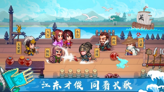 像素魏蜀吴-东吴长歌公测版是一款带有经营挂机元素的策略类游戏。像素魏蜀吴-东吴长歌公测版这款游戏模拟经营策略几种玩法融为一体,玩家在游戏中将会有机会带领广大的江东子弟踏上征程,开启一场丰富多彩之旅。