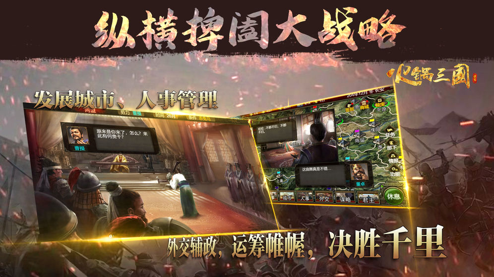游戏融合真实史料、君主扮演、特色方言配音的单机SLG游戏。游戏中玩家从君主立场到战略与战术搭配、延续“三国志”系列的经典玩法。让你成为一个时代的英雄,随时随地完成大陆的统一!