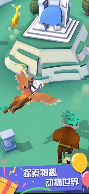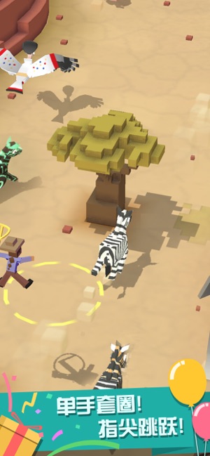 这是一款跑酷与养成一体的游戏,玩家需要在高速移动中套到动物,并送到空中动物园,成为绝世牛仔。