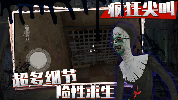 疯狂尖叫游戏是一款恐怖生存的游戏,游戏中有一个外表非常恐怖的修女来抓你,这是一个密室的房屋,你需要想办法逃离这里,这里的场景非常的恐怖还有很多诡异的场所和恐怖的背景音乐都在加剧你的恐惧,不要被修女抓到了,你会没命的。