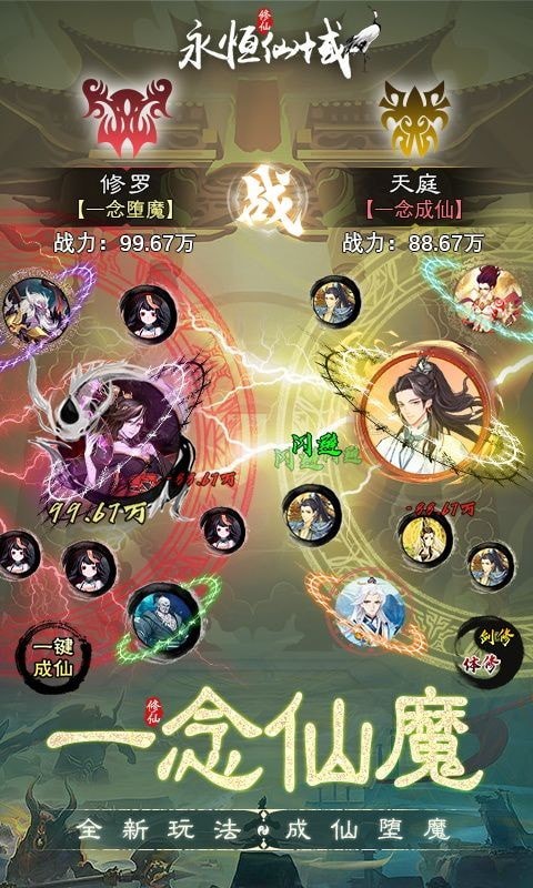 2.放置修仙:采用放置玩法,使玩家轻松愉快地体验修仙的乐趣,一键完成的快感带来了更便捷的游戏体验。