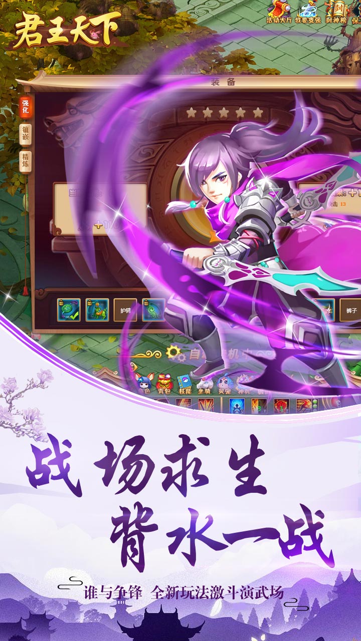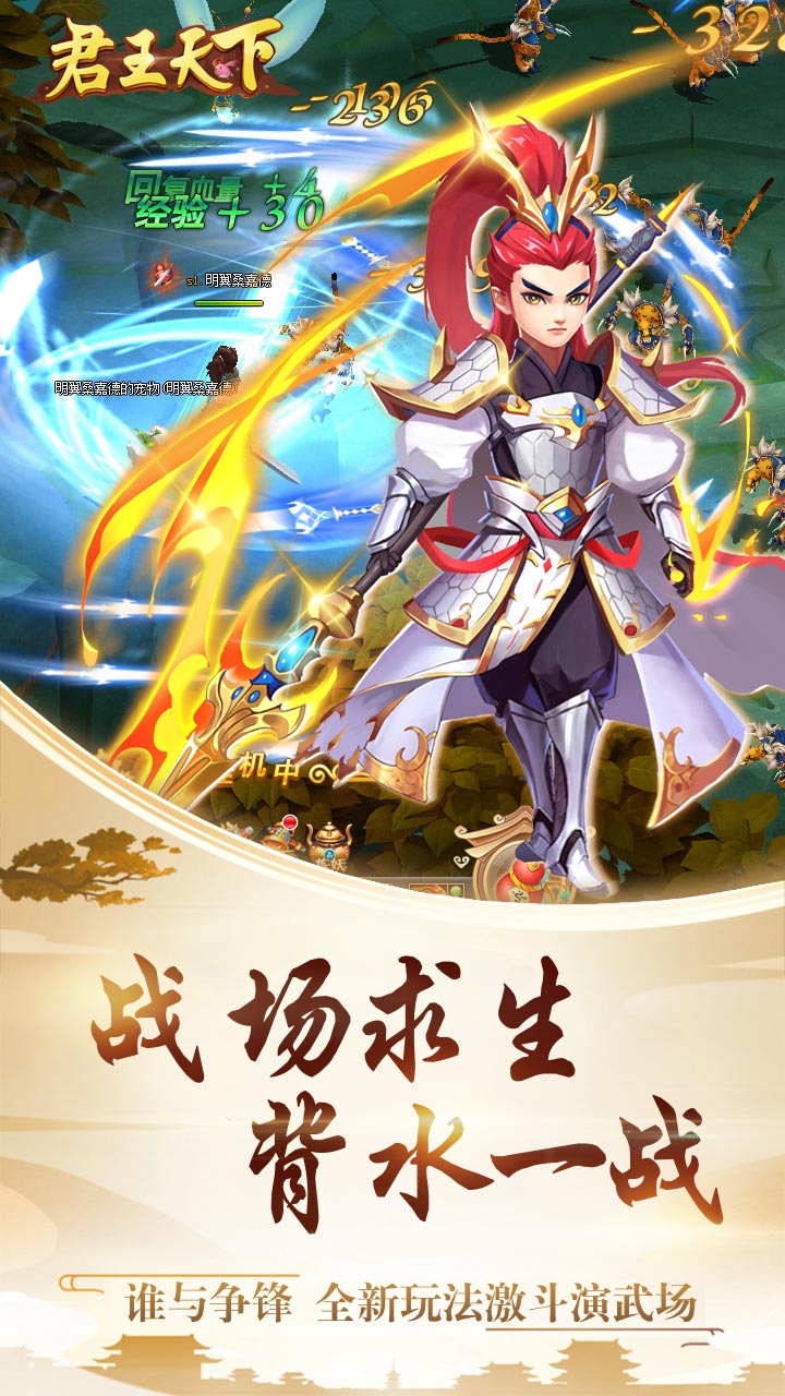 君王天下拥有3D超大地图场景,在游戏里玩家可以自由的探索,还有隐藏的剧情等你发现。精致的游戏场景和百变人物造型,使玩家可以更好的融入到游戏当中。在中,在游戏里玩家上线就送VIP,元宝装备拿到手软,对该游戏有兴趣的朋友一定要来看看了。