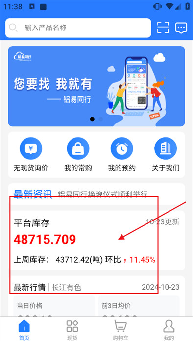 2、随后,能在首页上看到当天最新的铝材价格信息,并直接上下翻看浏览;