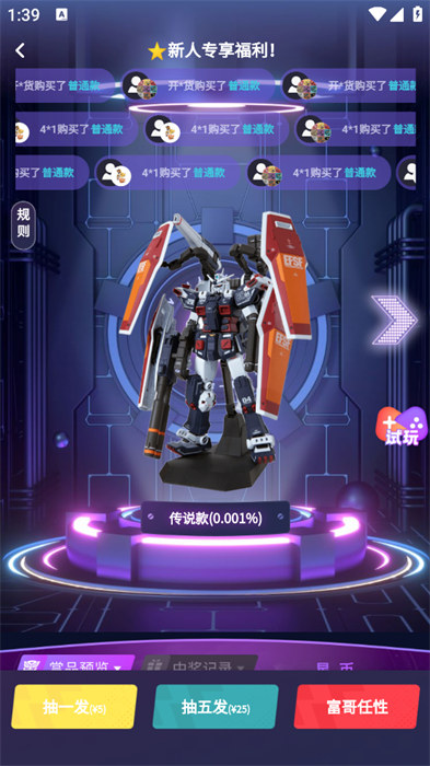 2、可以点击自己想要抽取的商品资源内容去进行抽奖的操作;