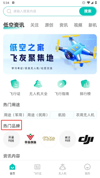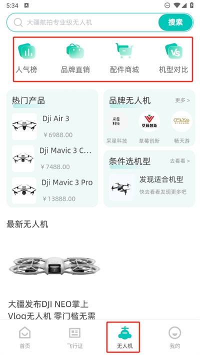 1、进入软件后在这里可以看到有关无人机的热门品牌,想要了解的可以在这里看看是有喜爱的无人机品牌;
