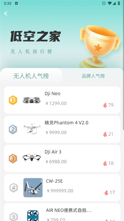 3、在人气榜中能够看到现在大家比较关注的一些无人机品牌,在此能够了解是否有符合自己需求的无人机;