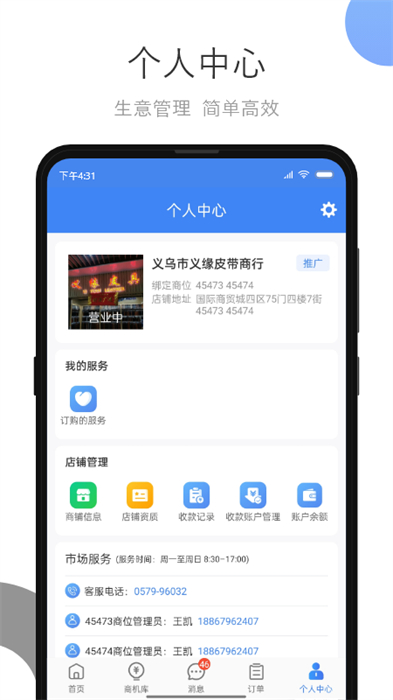 小商品城卖家版app为义乌卖家打造的店铺管理平台,一键为你连接小商品城平台为卖家提供专业的管理工具。在这里你可以管理所有店铺的产品,包括每日的销售数据都会清晰显示在后台供你查看。每个订单都有详细记录,实时为你录入最新的销售数据。欢迎有需要的朋友下载使用!