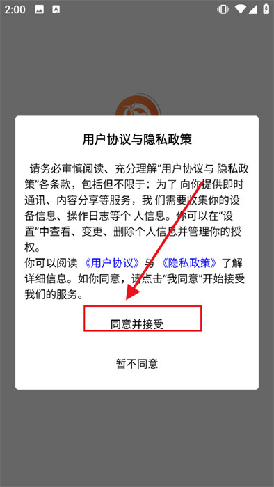 1、首先,将软件从本站下载到桌面上,并进入点击【同意】如下图;