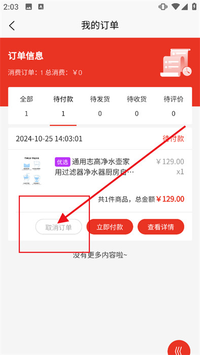 6、最后,进入详情页,这里能【取消订单】,如果确认需要可直接点击【支付】,整个操作十分的简单。