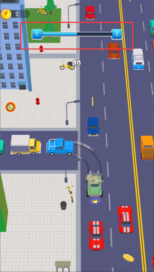 3、屏幕上方进度条会随着安全驾驶距离增长,当能量槽蓄满即可成功通关,同时解锁更复杂的城市道路场景。
