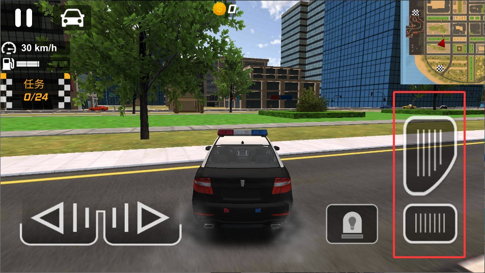 2、右侧按键负责动力控制,上推油门加速冲刺,下压刹车配合漂移,保持轮胎与地面的最佳抓地力。