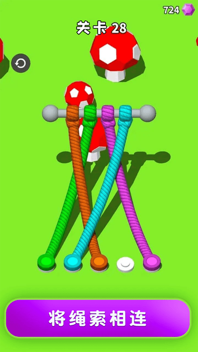 2、色彩识别与空间规划相结合,每根绳索都需要找到专属路径。看似杂乱的绳结中暗藏规律,培养玩家的观察力。