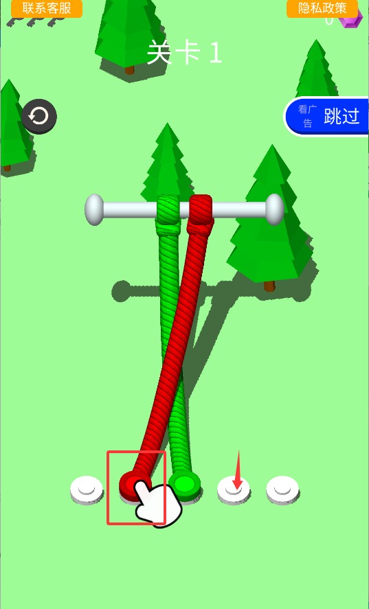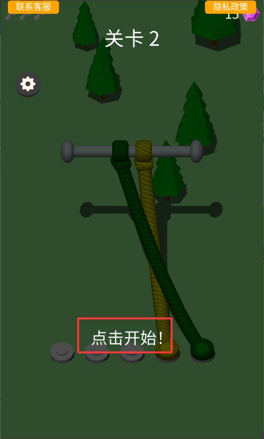 1、游戏加载完毕后点击开始按钮,观察初始界面中缠绕的绳结布局,提前规划好解绳路线和操作顺序。