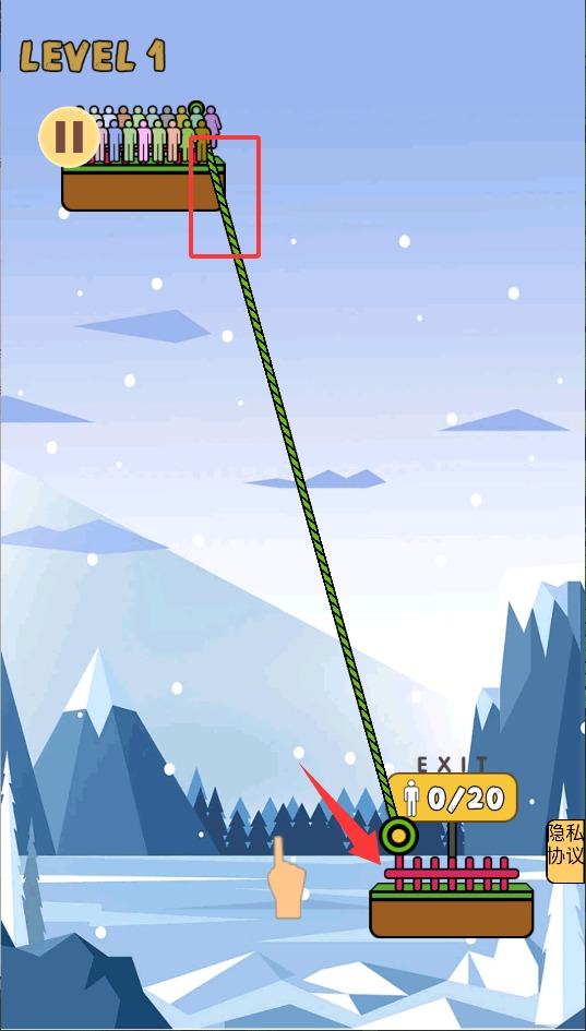 、2、通过手指滑动连接绳索搭建路径,注意避开障碍物并确保路线稳固,为后续移动创造安全通道。