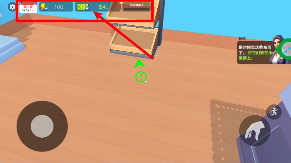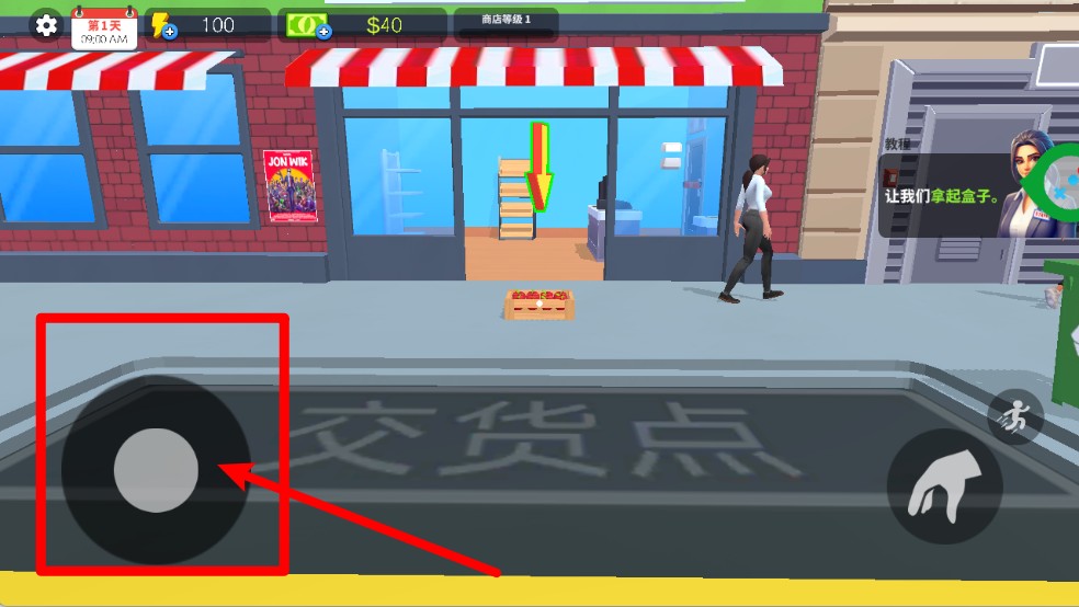 3.利用左下角的虚拟摇杆控制人物移动,可自由进出商店与街道,快速完成从交货点取货到货架补货的完整流程。