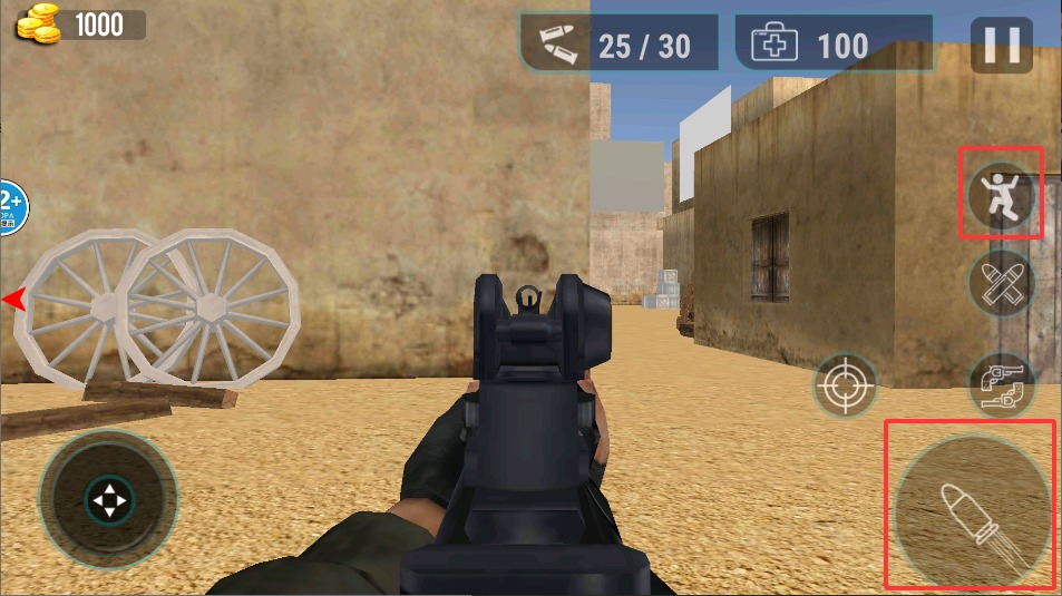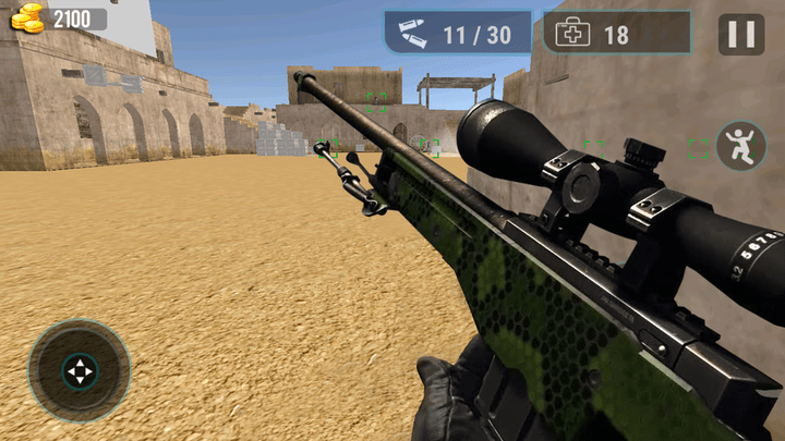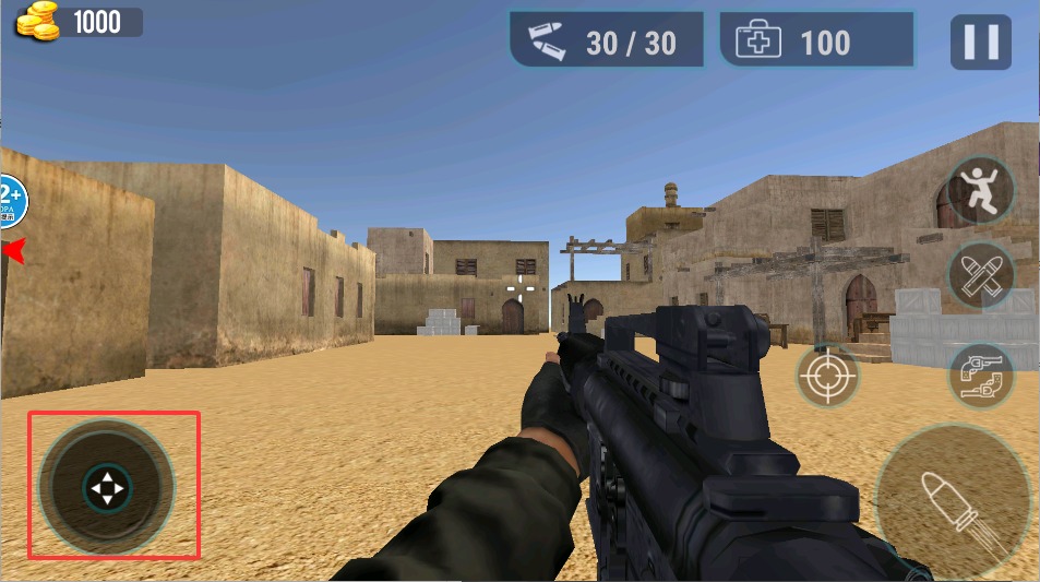 1、滑动左侧屏幕控制角色移动,寻找最佳狙击点位,注意利用草丛和岩石作为隐蔽。
