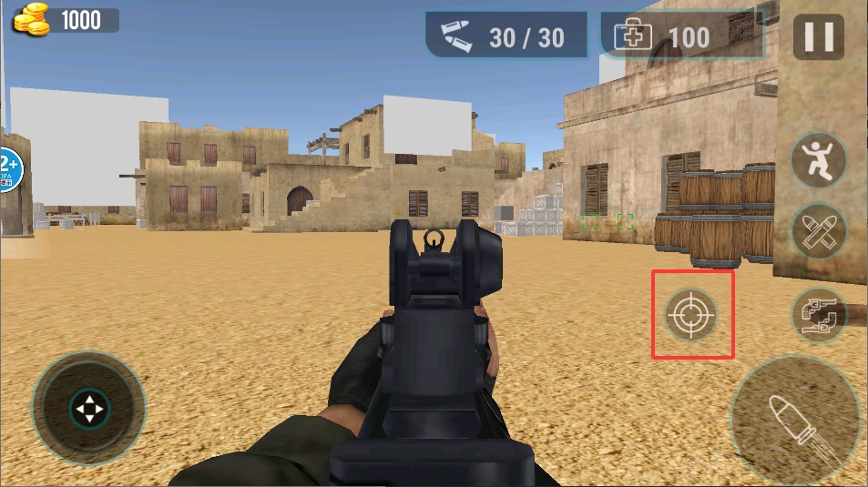 2、点击瞄准按钮进入狙击模式,调整准星锁定敌人头部,屏住呼吸提升射击精准度。