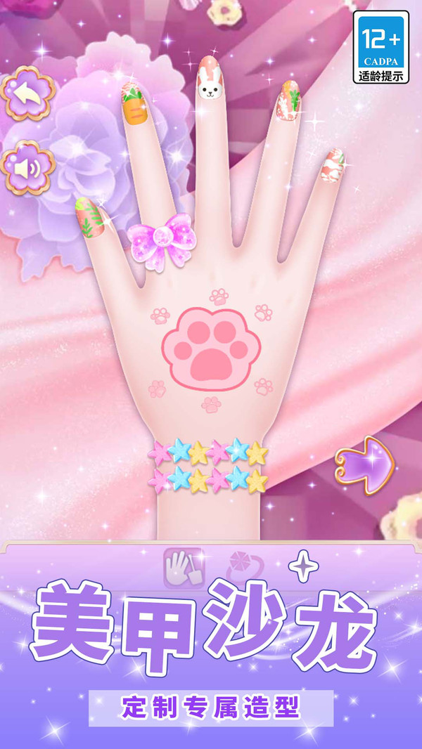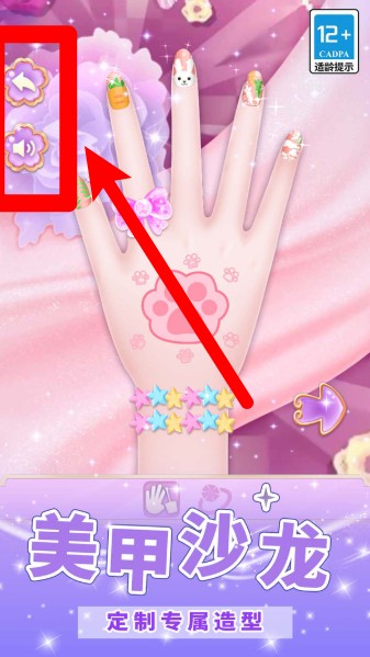 3.点击左上角的按钮区可以返回上一步或确认当前操作,方便快速调整美甲设计与整体搭配内容。