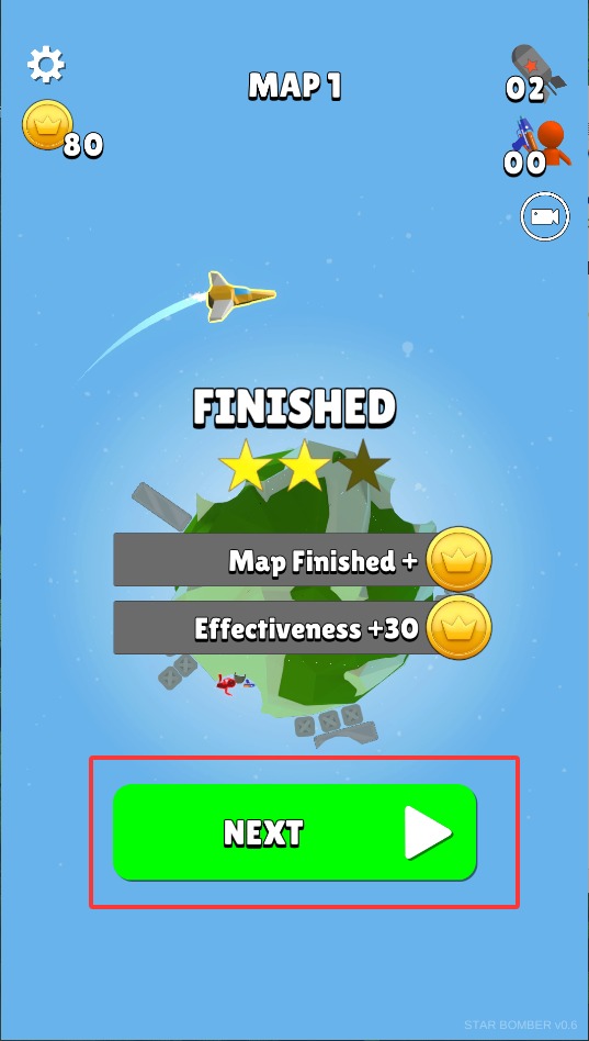 4、成长升级系统:通关后获得的金币可用于强化战机性能,游戏需要解锁更具威力的新型炸弹。