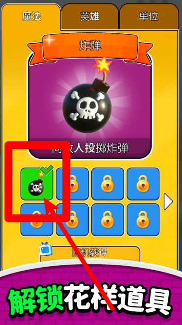 1.点击绿色图标选择炸弹技能使用炸弹可对敌人造成高额范围伤害帮助快速清除前方阻挡敌军。