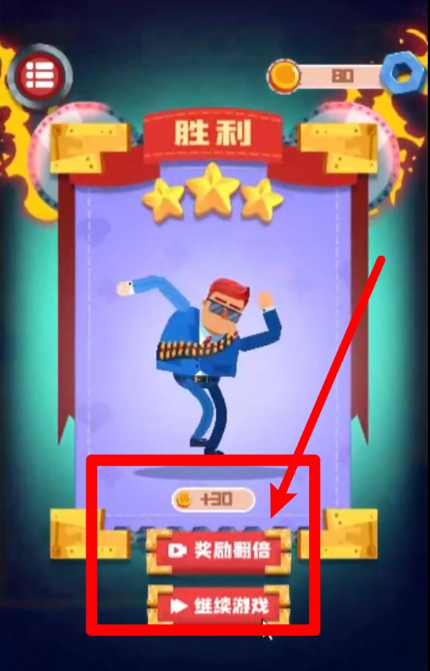 3.胜利后可领取金币奖励,并可选择观看广告来将奖励翻倍,再点击按钮进入下一场战斗。