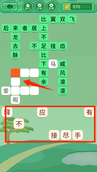 2、将下方的字填入空格中即可完成关卡。