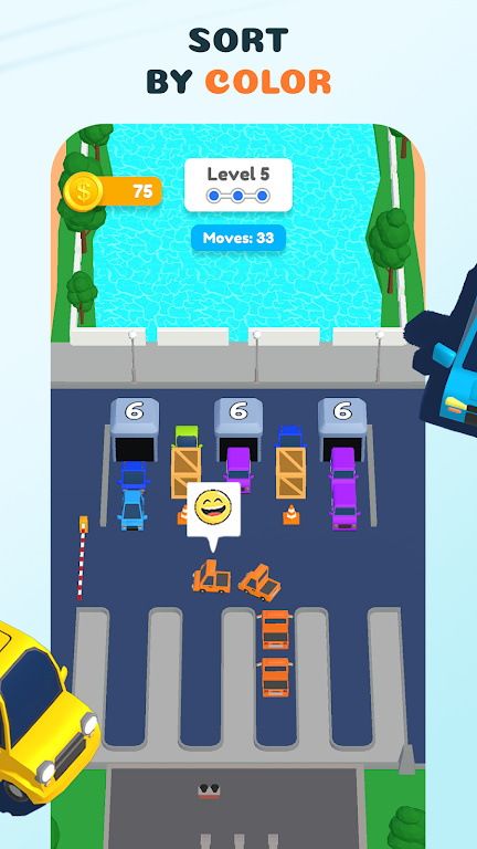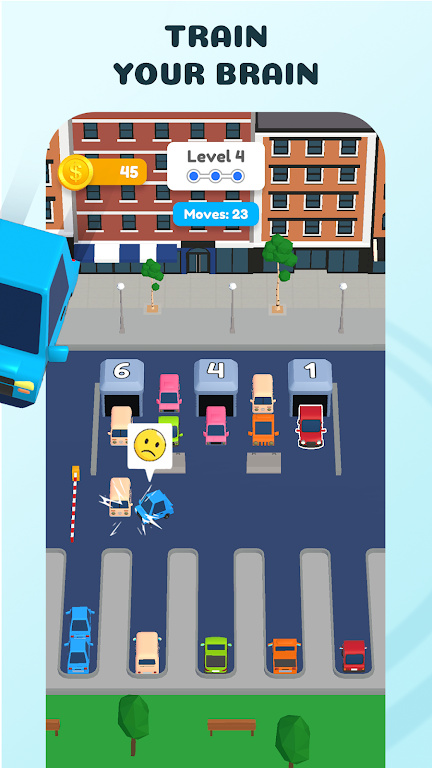 3、难度提升循序渐进,初始关卡帮助玩家掌握基础操作,后续则引入多层立体车库和移动障碍等复杂环境,让挑战性与成就感完美平衡。