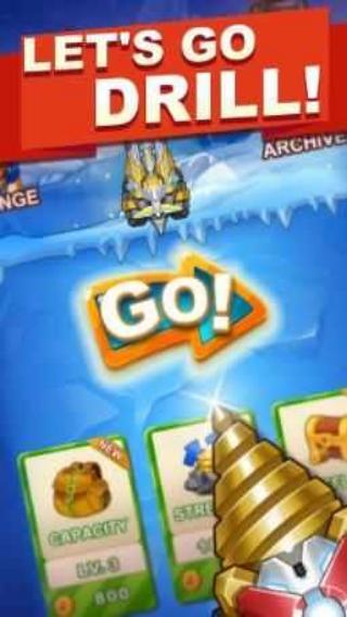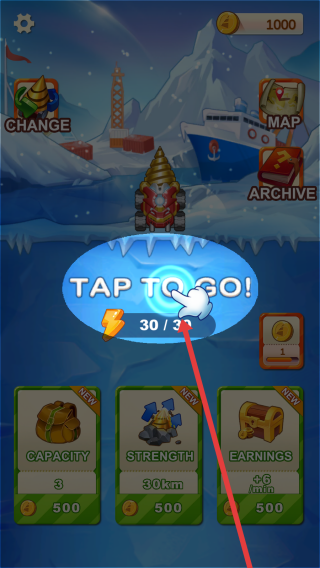 1、在进入游戏的主界面,通过点击【TAP-TO-GO!】,驾驶挖矿机进入地底,开始挖矿冒险。
