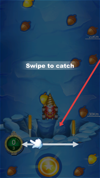 2、地底操作时,按“Swipe-to-catch”提示,滑动屏幕控制挖矿机,收集橡果(资源),避开障碍,推进深度。