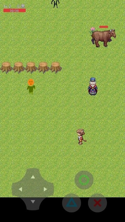 1、进入游戏后操控像素小人在地图探索,点击屏幕触发互动,遇到存档点可随时保存进度。