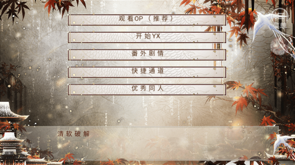 2、想了解剧情先【观看OP(推荐)】,新剧情点【开始YX】,看额外内容选【番外剧情】,走特定情节用【快捷通道】,赏同人点【优秀同人】,按需操作。