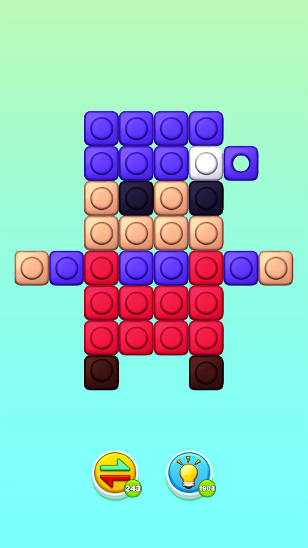3、挑战难度循序渐进,初期关卡帮助玩家掌握基础操作,后期则需要巧妙运用策略才能完成复杂构图,整个过程充满成就感。