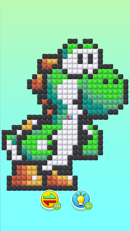 2、色彩组合千变万化,从基础三原色到渐变色系应有尽有,丰富的调色板让玩家可以自由发挥创意,打造独一无二的像素艺术作品。