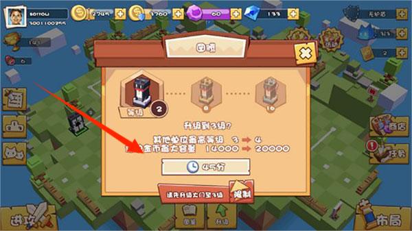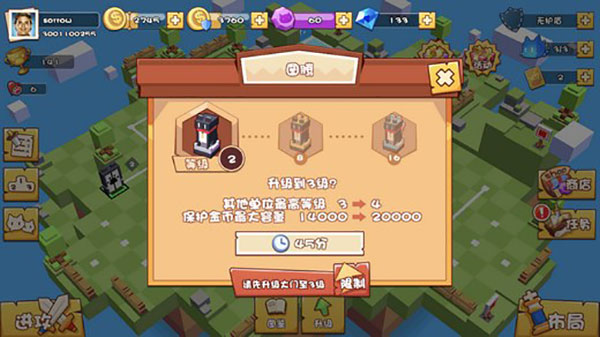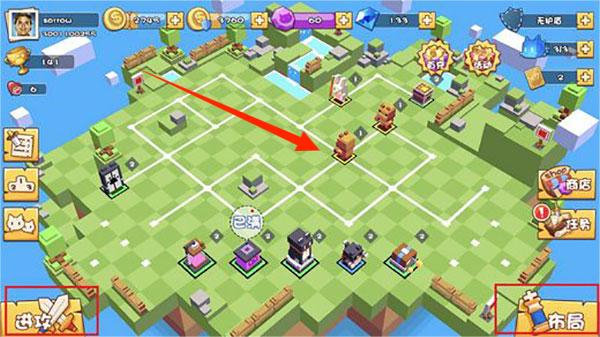 1、点击布局,调整建筑位置,升级防御塔,提升基地防御能力,抵御进攻。