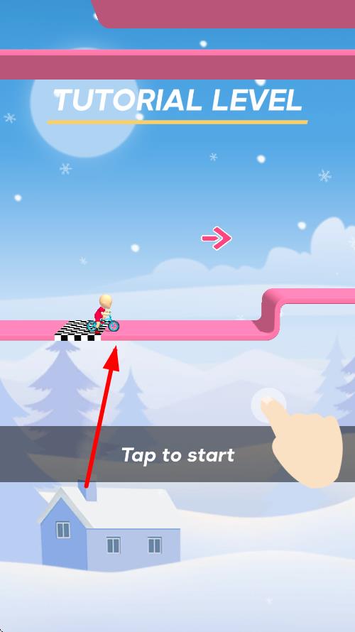1、进入界面后选择可爱角色,在初始赛道操控自行车起步,通过点击屏幕控制跳跃躲避前方障碍。