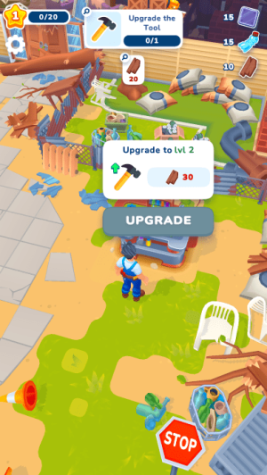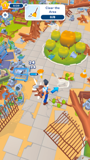 1、玩家需要控制角色移动拾取各种工具,如锤子扫帚等,用于清理废墟中的杂物和损坏的家具。