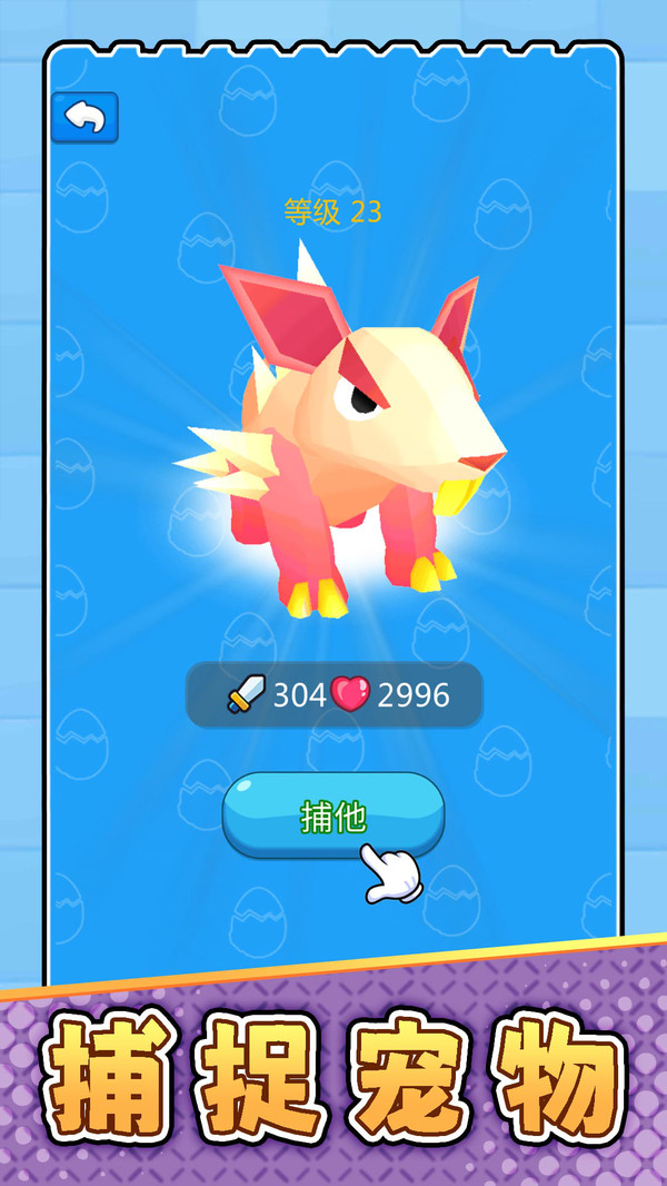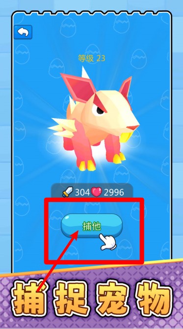 3.点击捕捉按钮:面对野生宠物时点击“捕他”按钮即可尝试收服,收集稀有强宠需结合战力判断成功率再出手。