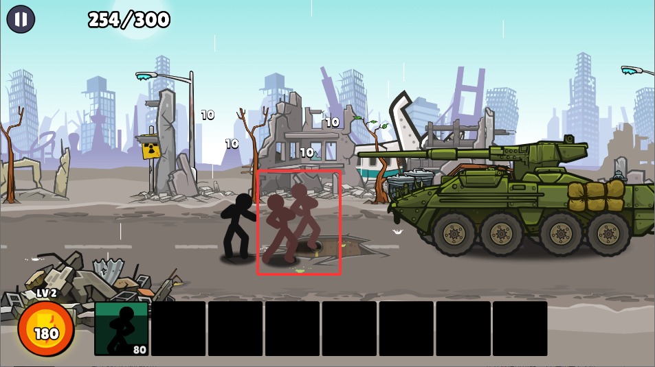 4、震撼的战场特效表现,机枪扫射、火焰喷射等攻击效果华丽炫目。火柴人风格的战斗动画流畅自然,充满打击感。