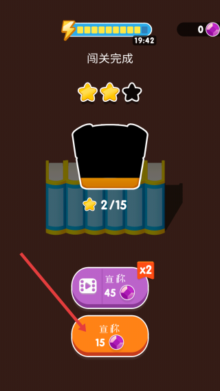 3、奖励领取:闯关完成后,点击橙色“直称15”按钮,获取紫晶奖励。