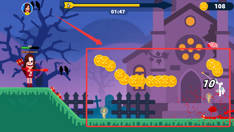 3、战斗中收集金币,可用于强化弓箭或解锁角色,持续推进关卡挑战更多难关。