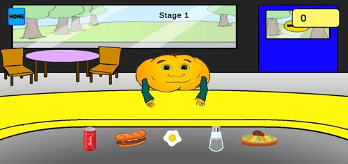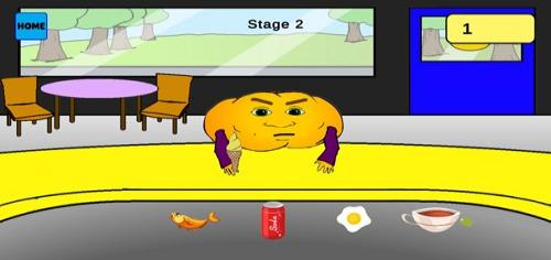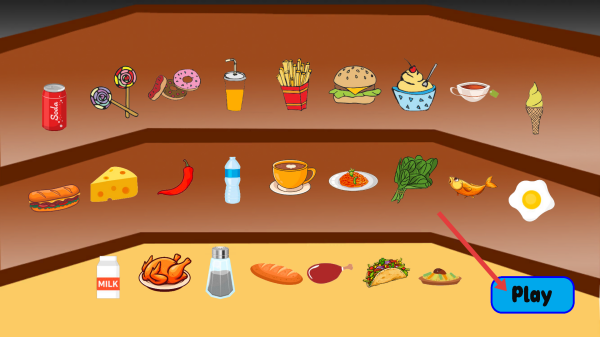 2、玩法开启:在陈列各类食物的界面中点击“Play”,跳转至标注“Stage1”的餐厅场景,开启互动挑战。