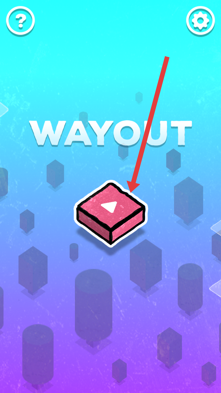 2、进入出路的游戏主界面,需要点击中央粉色带播放箭头的方块,开启游戏思维的冒险。